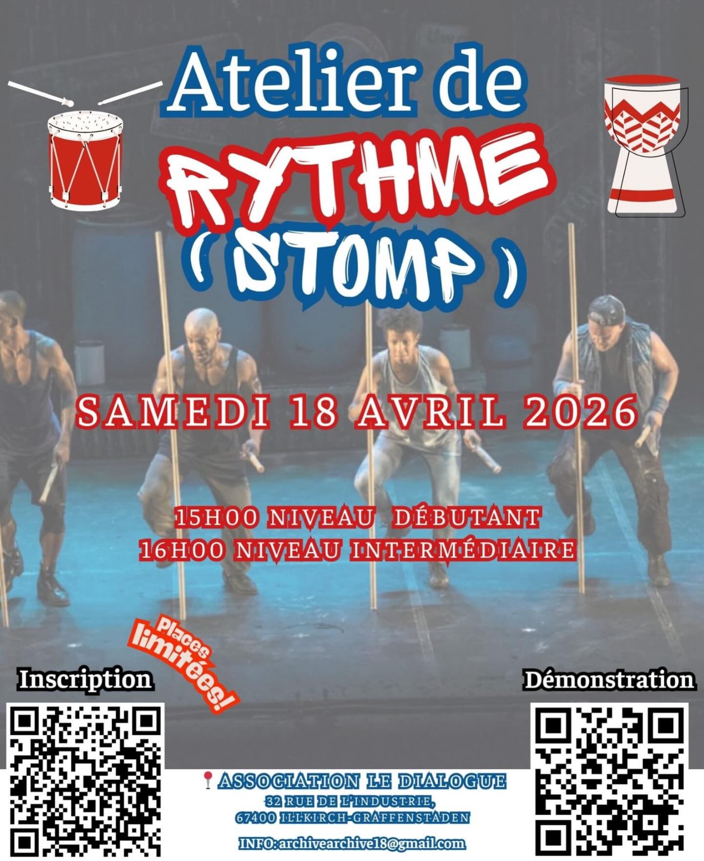 Le 18 avril 2026, la Plateforme Artistique et Culturelle (PAC) propose la deuxième édition de son atelier Rythme — STOMP, au siège de l'association Le Dialogue à Illkirch-Graffenstaden.