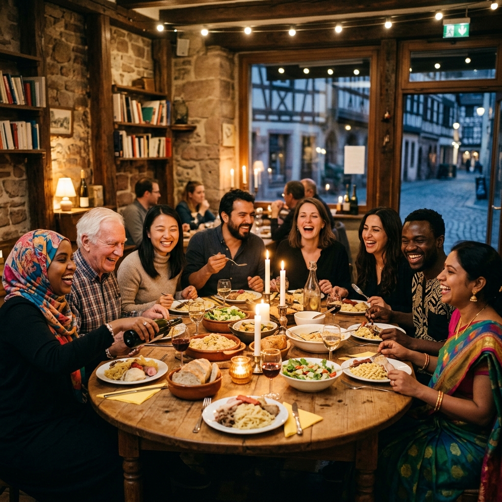 Véritable institution strasbourgeoise depuis 1998. Ces dîners thématiques rassemblent des citoyens de tous horizons autour d'une table commune, créant un espace neutre de dialogue citoyen.